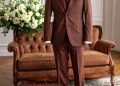 This lemon-yellow suit is a vibrant nod to spring, offering a tailored yet playful option for daytime events or a polished brunch. The soft sheen of the fabric catches the light, enhancing its lively hue while maintaining an air of sophistication.