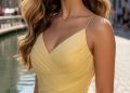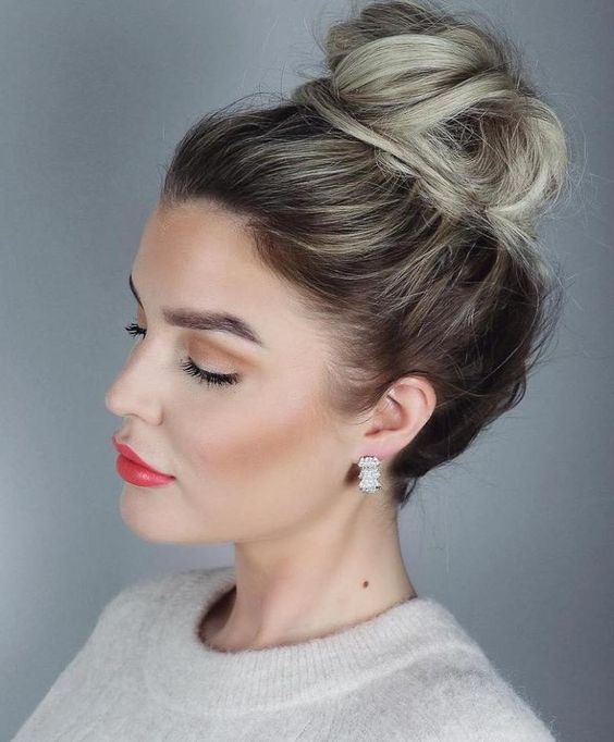 This hairstyle combines elegance and casual charm. The hair is swept up into a high bun, slightly undone to give a relaxed yet sophisticated vibe. The subtle volume at the crown complements the overall look, while the soft texture of the bun creates an effortless appeal. This style pairs wonderfully with statement earrings, drawing attention to the face. It’s perfect for those days when you need a quick updo that still feels stylish and professional.