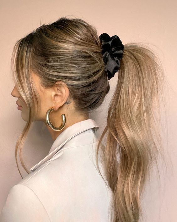 Sleek Ponytail with a Velvet Scrunchie
