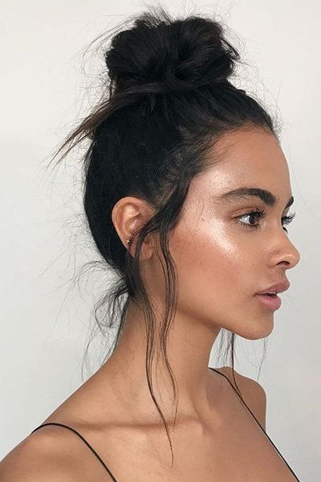 To dress up this look, you might add a pair of stylish sunglasses or a cute, light scarf. Avoid heavy makeup or bold accessories that might clash with the casual feel of the top knot.