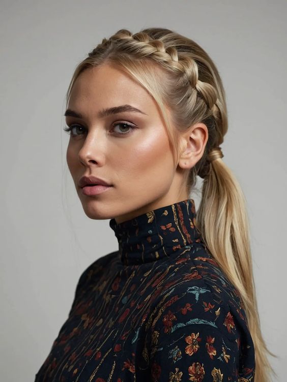 - Braid: The braid starts at the crown and weaves elegantly down, incorporating sections of the hair to give it a seamless look.