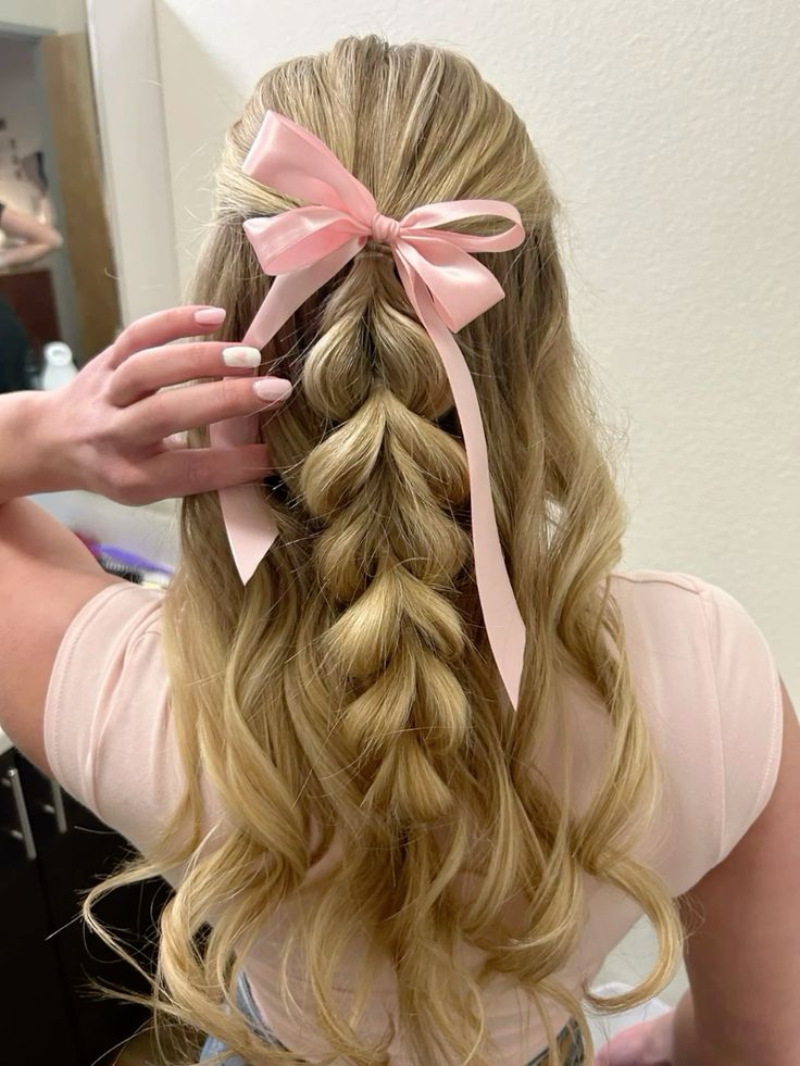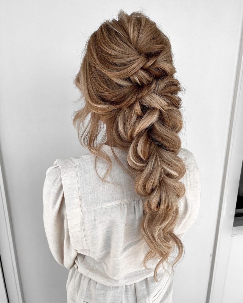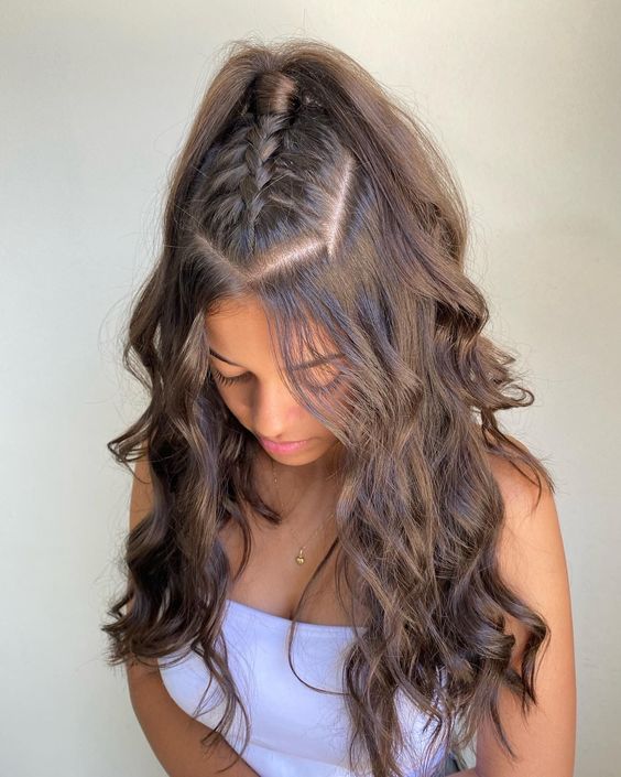 Lastly, the voluminous half-up style is perfect for those who want a bit of drama in their look. The hair is styled into a voluminous, curly half-up, half-down do, offering both elegance and ease.