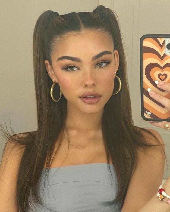 This look could be enhanced with a colorful scrunchie to add a pop of color. Steer clear of heavy makeup that might clash with the playful hairstyle.