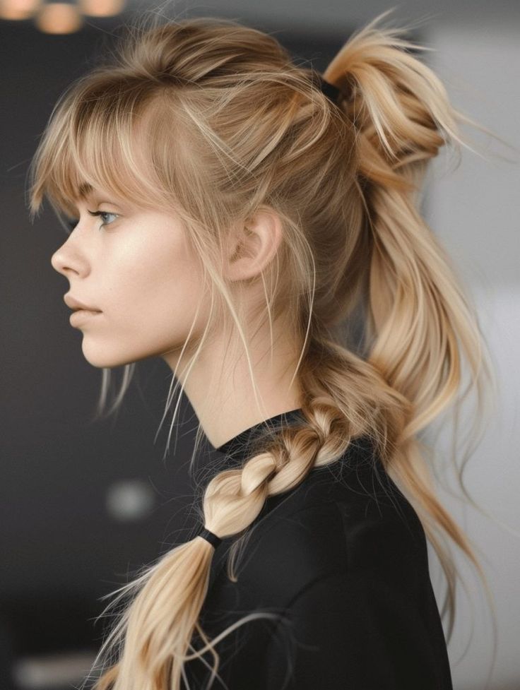 Looking for fresh hairstyle ideas that combine versatility and a touch of flair? Whether it’s a sleek low ponytail, a braided look, or a messy half-up style, pairing it with bangs adds a unique and trendy twist. These looks balance classy elegance with effortless charm, making them perfect for any occasion.