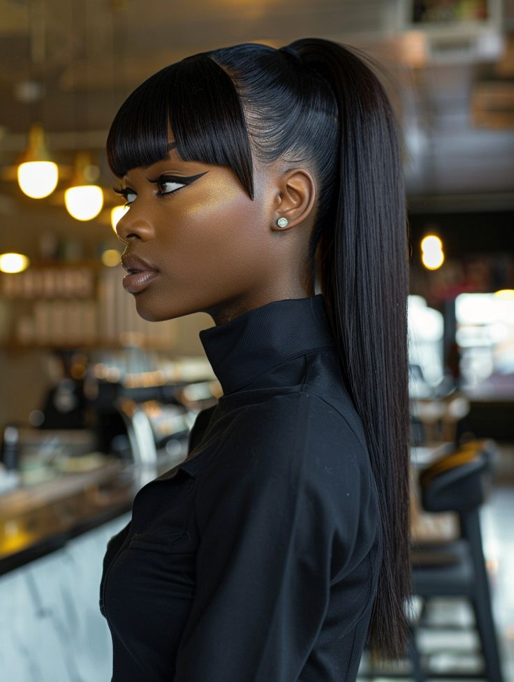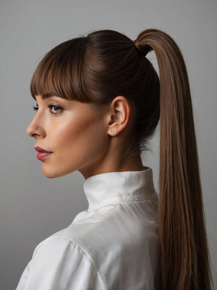 Sleek Ponytail with Straight Bangs