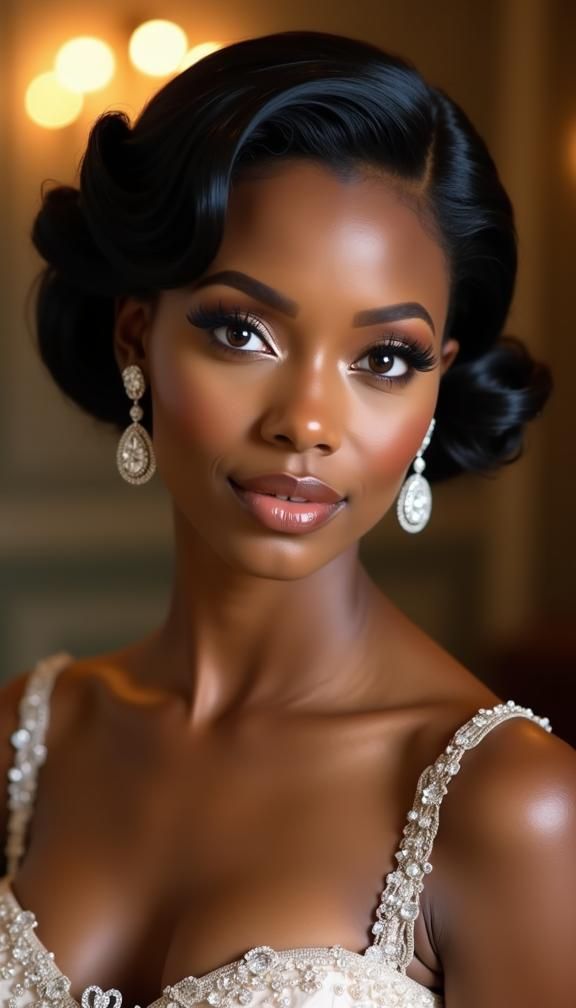Adding a sparkling hair comb or vintage-inspired clip would amplify the glamour. Avoid overly casual accessories that clash with the sophistication of the waves.