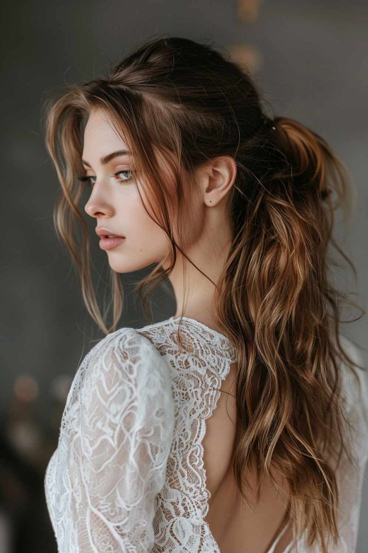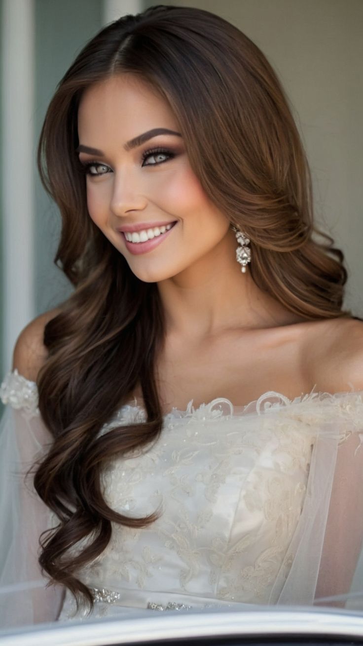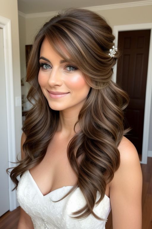 - Loose waves cascading down the back for a romantic touch.