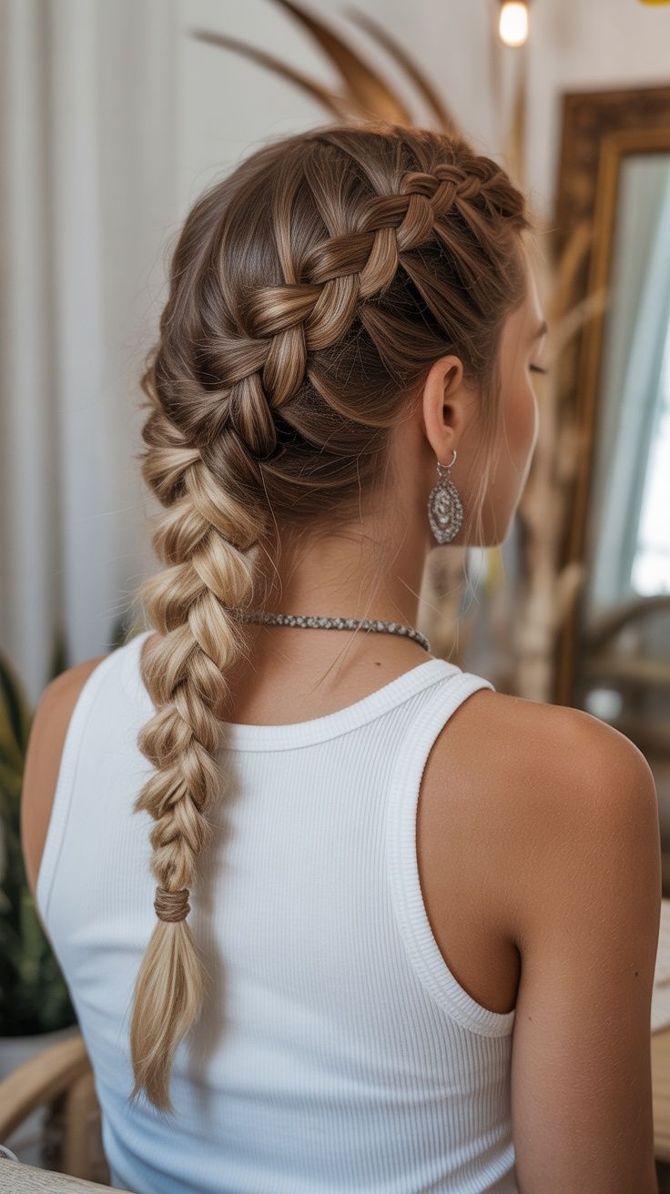 - Tank top: Ribbed texture offers contrast with the braid’s smoothness.