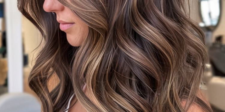 The soft balayage technique brings natural dimension to dark brown hair, enhancing its depth with subtle highlights. This approach creates a seamless blend that looks effortlessly sun-kissed and vibrant. Suitable for medium-length hair, the subtle waves add texture without overwhelming the natural beauty of the color.