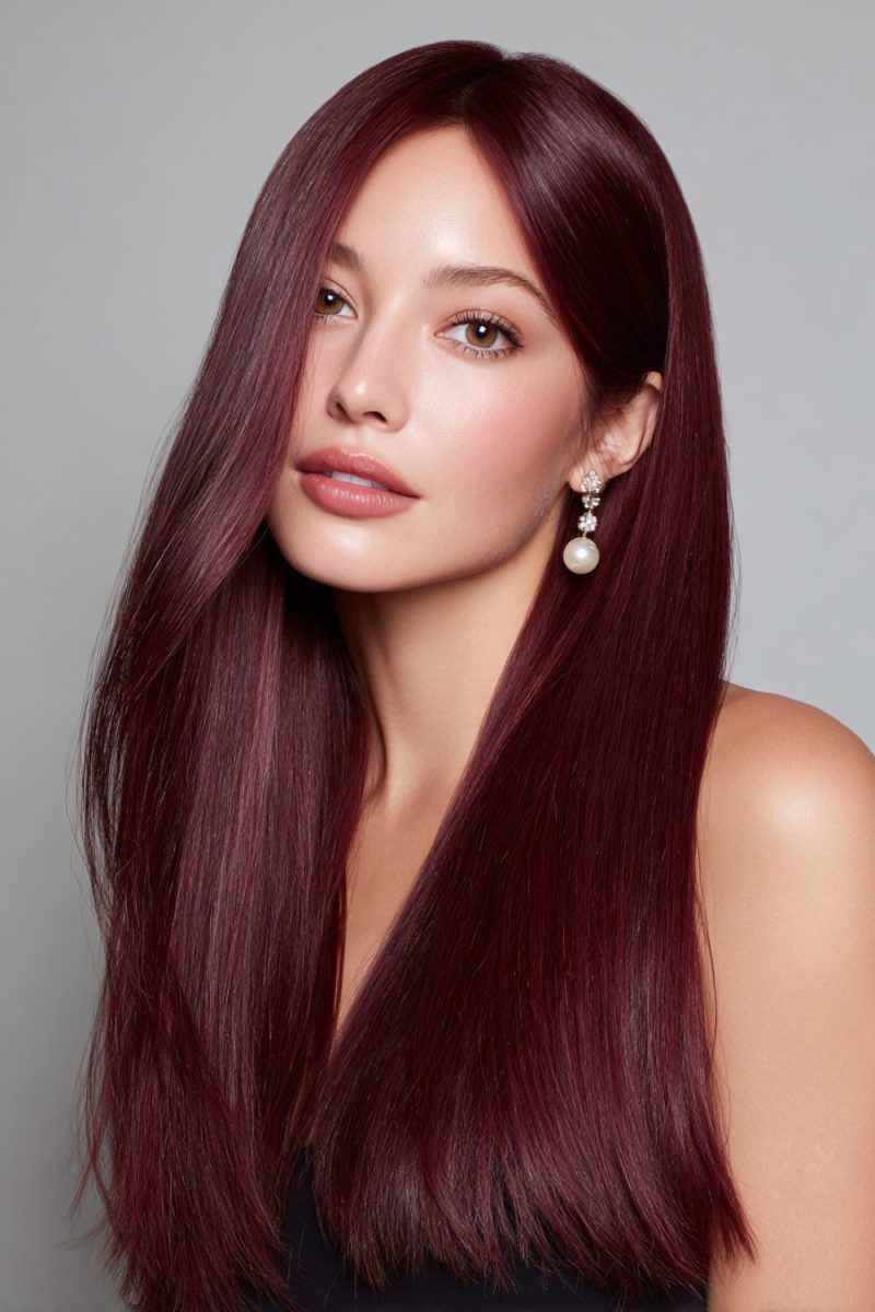 Deep burgundy-wine shade that adds dimension and remains wearable for everyday.