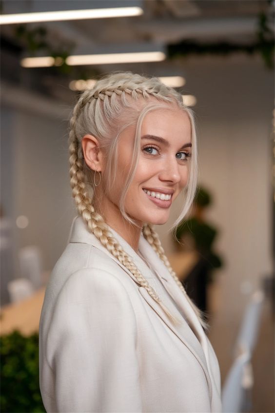- Tight Dutch braids: These keep the hair neat and controlled, perfect for a long-lasting style.