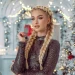 - Rich, warm tones: The golden hues of the hair complement the rich reds and greens of the decorations.