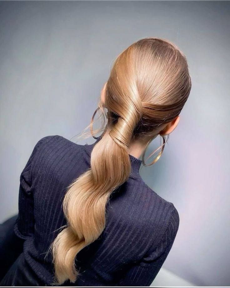 This modern and easy ponytail is perfect for New Year’s Eve events where you want to maintain elegance with minimal effort. The tightly twisted hair at the base ensures the ponytail stays sleek and controlled, making it ideal for partygoers who want to dance all night without their hairstyle getting messy. This look works especially well for women with longer, straight hair and pairs nicely with structured clothing.