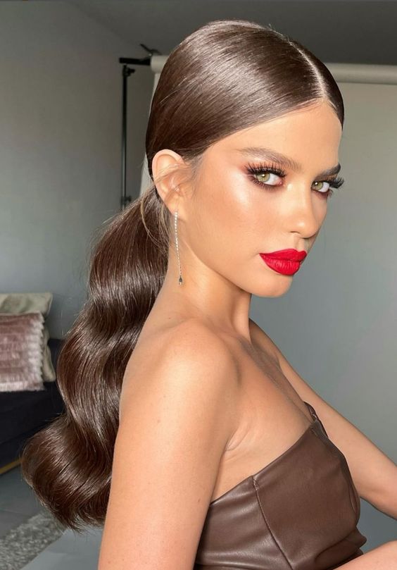 The low ponytail with voluminous waves is an understated yet striking option for those who prefer easy and party-ready hair. The soft waves create a romantic feel, while the sleek top ensures the look stays sophisticated. This hairstyle is a great choice for Eve parties that require both comfort and style.