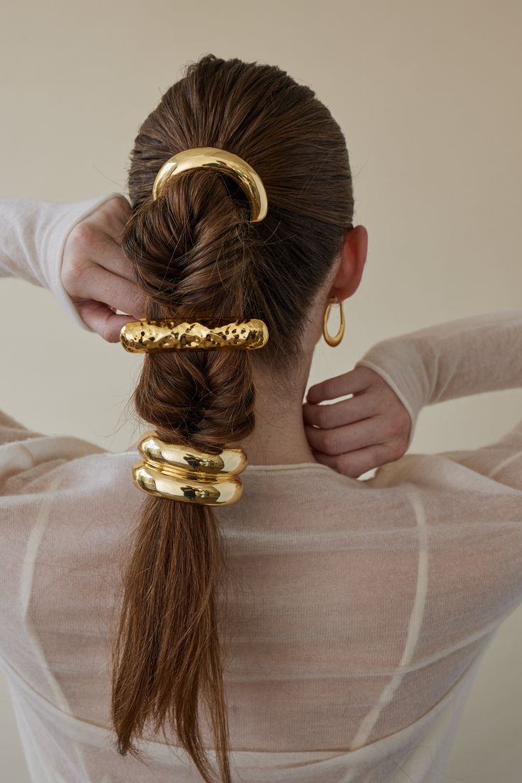 - Minimalistic, metallic jewelry for an added touch of elegance