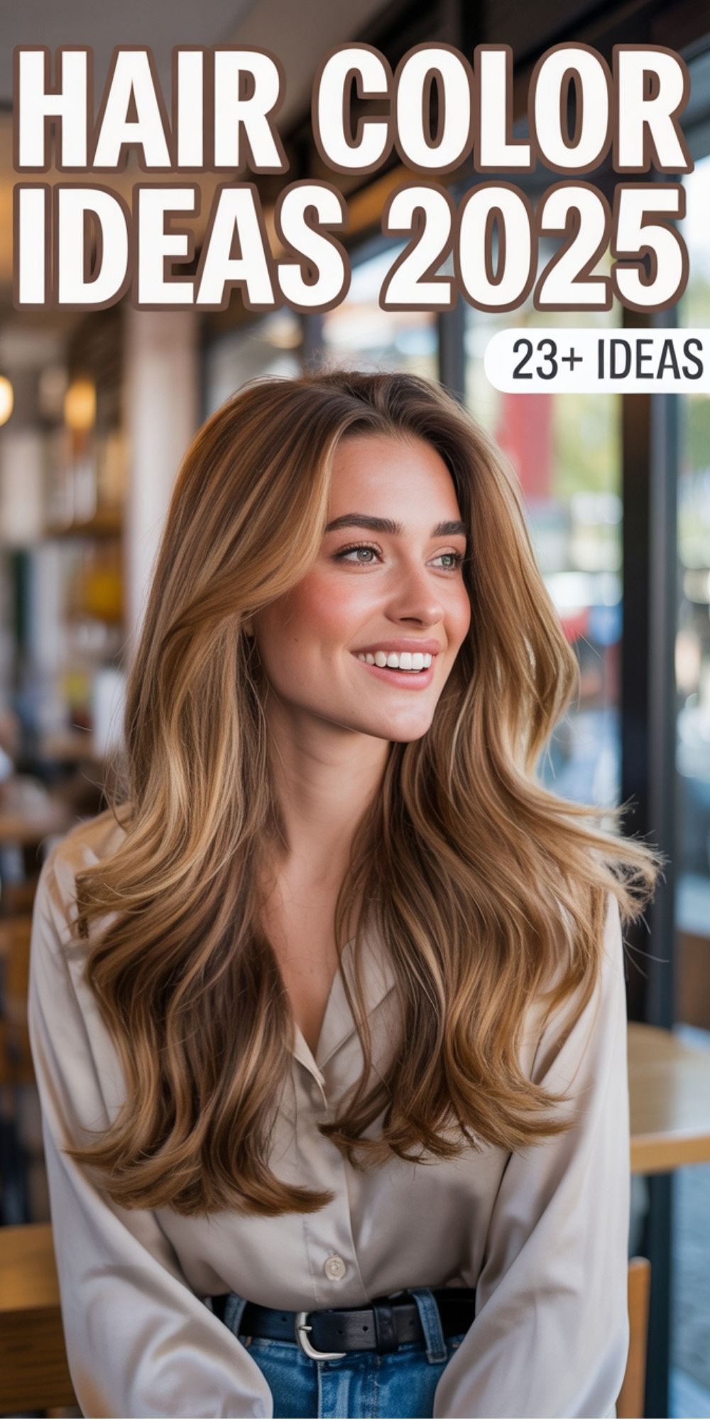 Honey blonde is the ultimate fun trend for 2025. With its golden undertones and natural flow, this shade is flattering for spring brunches, beachy summer afternoons, and even layered under cozy fall outfits. The long, textured waves here give the color dimension, while the casual white tee makes the overall vibe playful and laid-back. Best suited for women with medium to long hair; it might feel overwhelming on a cropped bob.