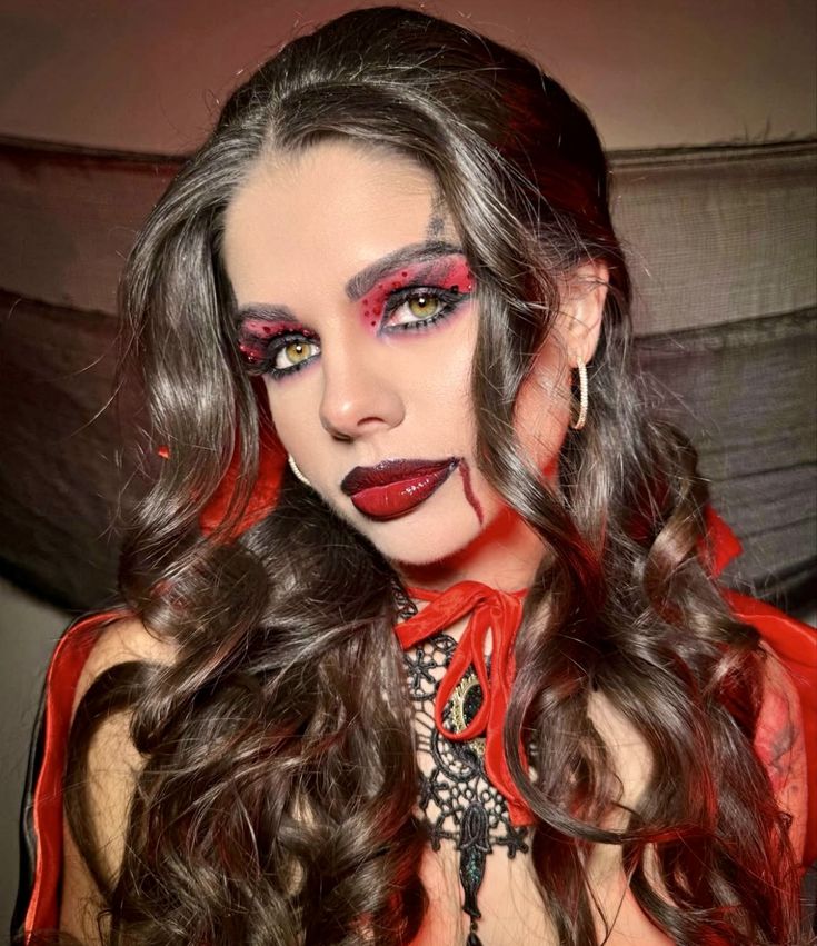 You can build this look further with temporary fangs or glittery lashes. But steer clear of excessive red accents in the makeup — balance is key to keeping it glam, not gimmick.