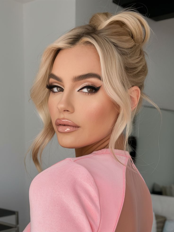Fresh, glowy makeup: Complements the hairstyle without overshadowing it.