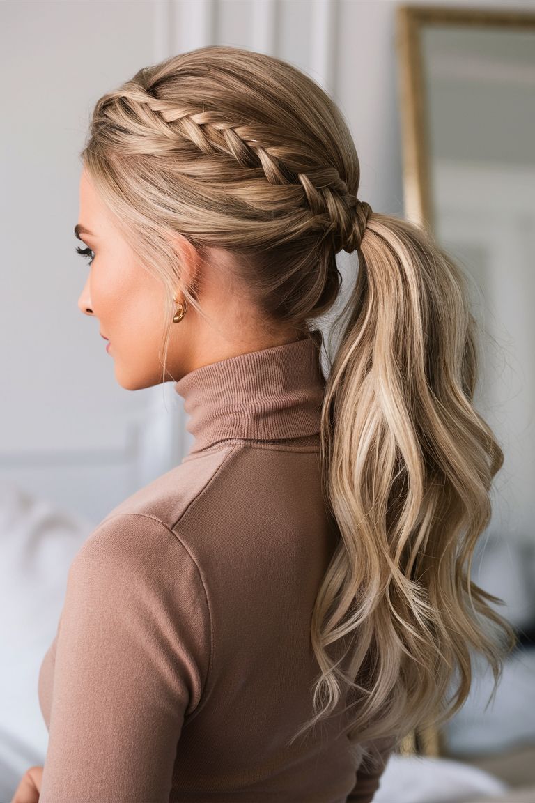 I’d enhance this with a velvet ribbon tied at the ponytail base. What I wouldn’t add? Excessive glitter sprays—they can make the braid look messy instead of chic.