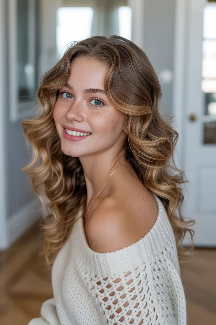Styling: Loose cascading curls that create a silky waterfall effect.