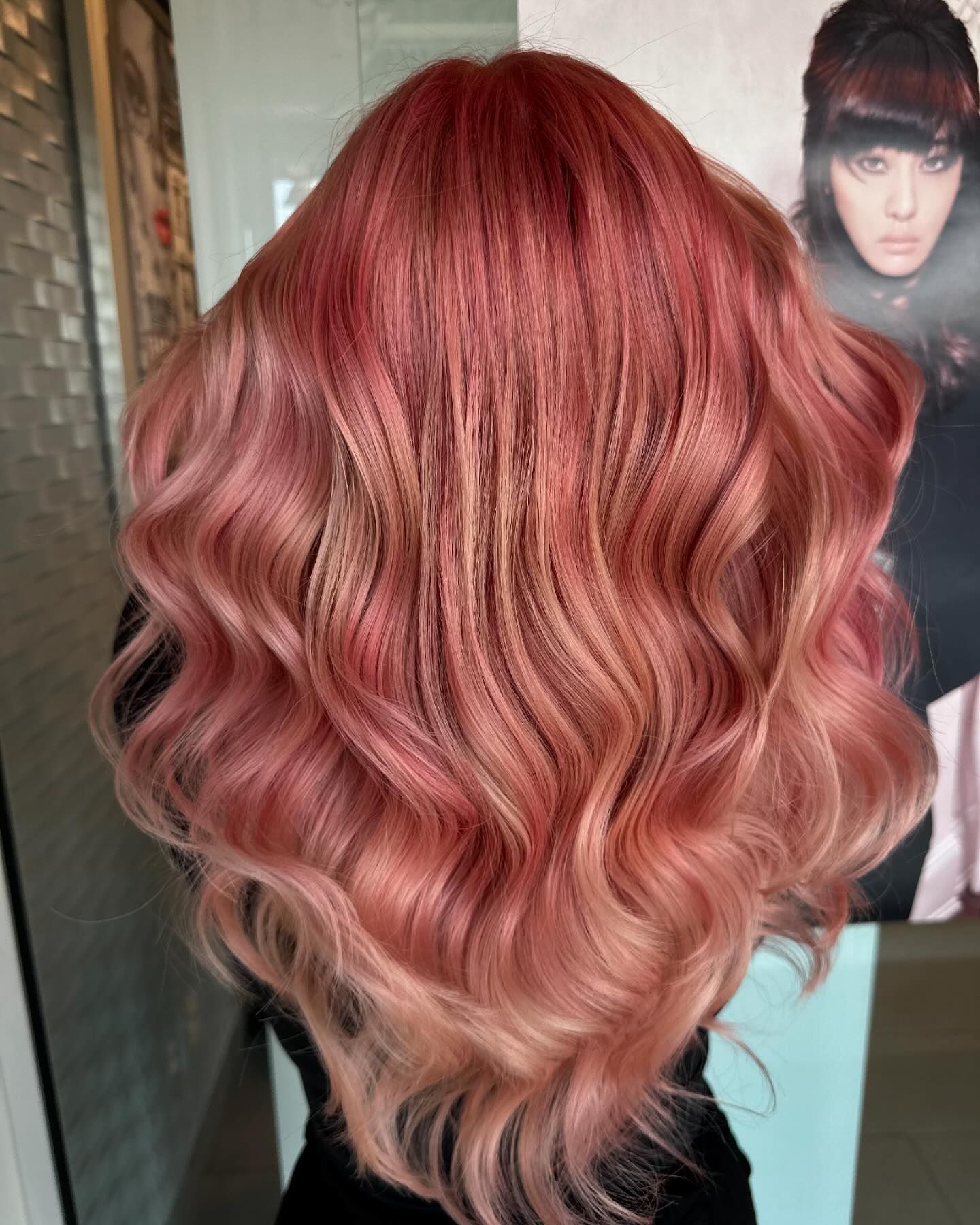 Imagine rich, red and pink tones blending seamlessly in cascading waves, creating a soft and romantic strawberry look. This style combines rose gold shades with touches of warmth, making it perfect for those wanting a standout color without going too bold.