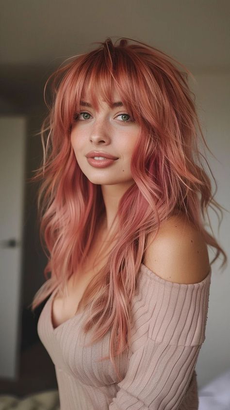 This soft, pink rose gold look combines light and airy vibes, offering a refreshing twist to traditional strawberry tones. It’s the ideal choice for someone wanting a fun, flirty look without being too overpowering.