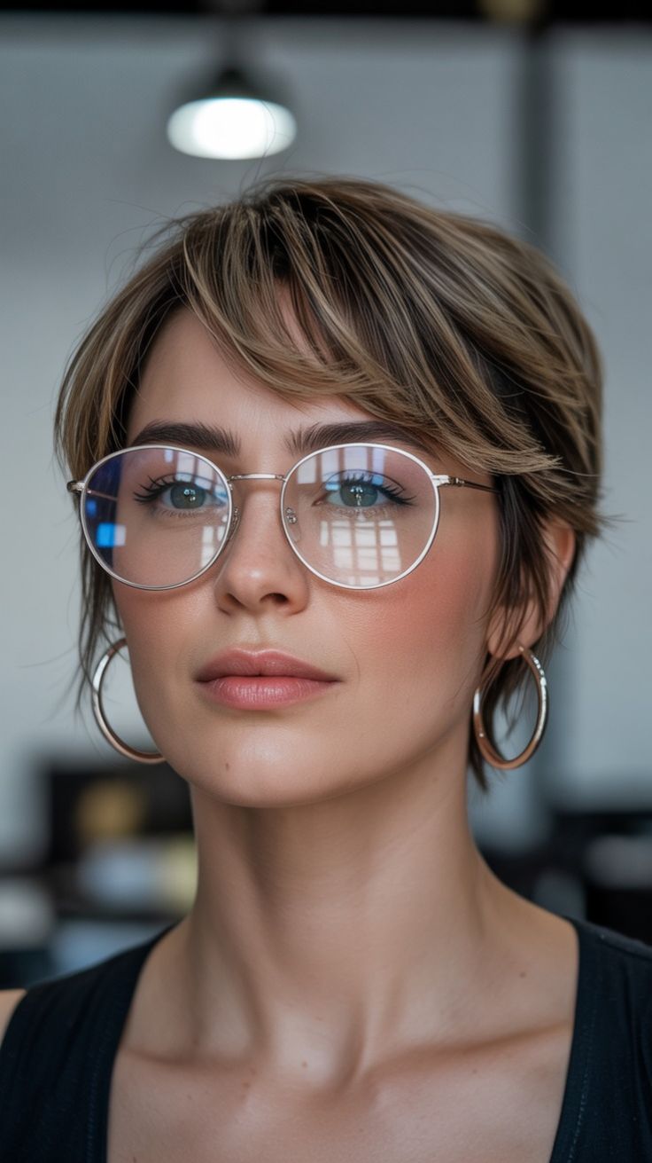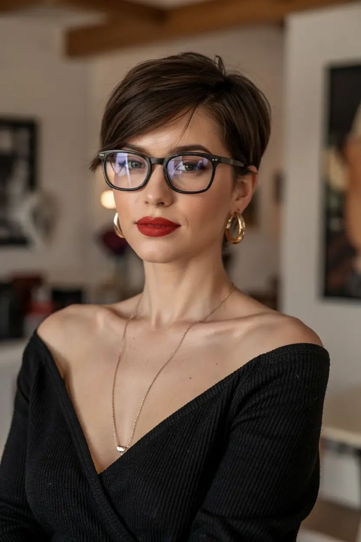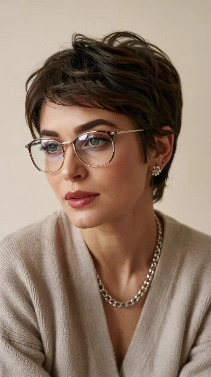 Elegant Brunette Pixie with Glasses