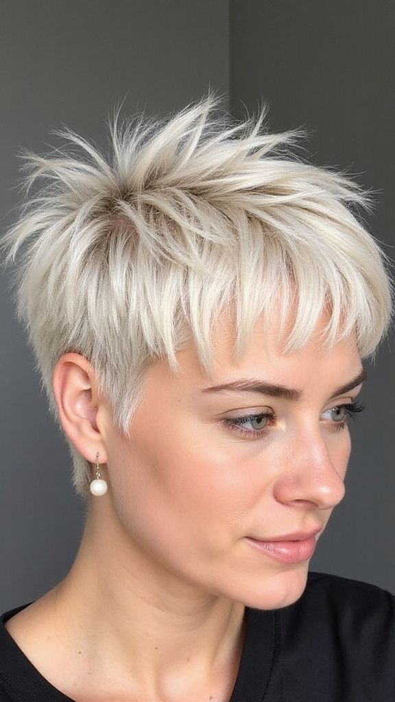 Stylist’s Note: Keep roots slightly darker for depth. Avoid excessive toning; this short hair edgy cut looks best when natural shimmer shines through.