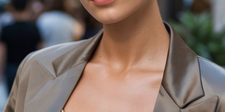 I’d pair this with delicate pearl studs and a soft nude lip. Avoid over-layering accessories — this cut thrives on its natural luminosity.
