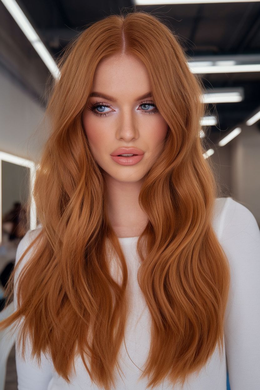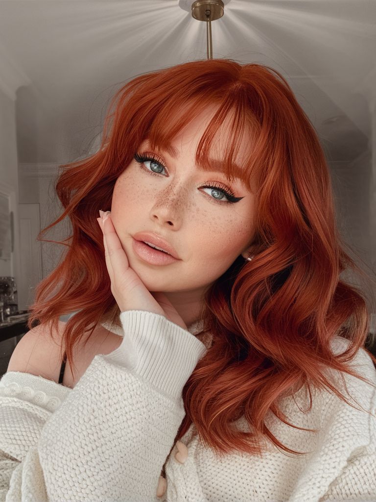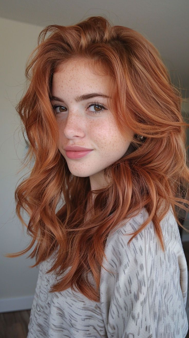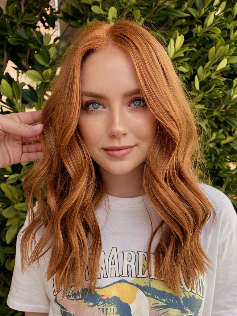There’s something undeniably fresh about soft copper waves that hover just below the shoulders. The shade radiates a natural warmth that flatters fair to medium skin tones, while the loose wave pattern softens features and adds movement. This look works beautifully for oval, heart-shaped, or slightly angular faces, especially for those who want color impact without the commitment of a high-maintenance blonde and dark contrast. Ideal for spring brunches, weekend strolls, or creative office settings, it brings both polish and approachability.