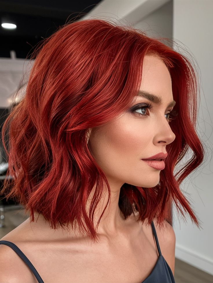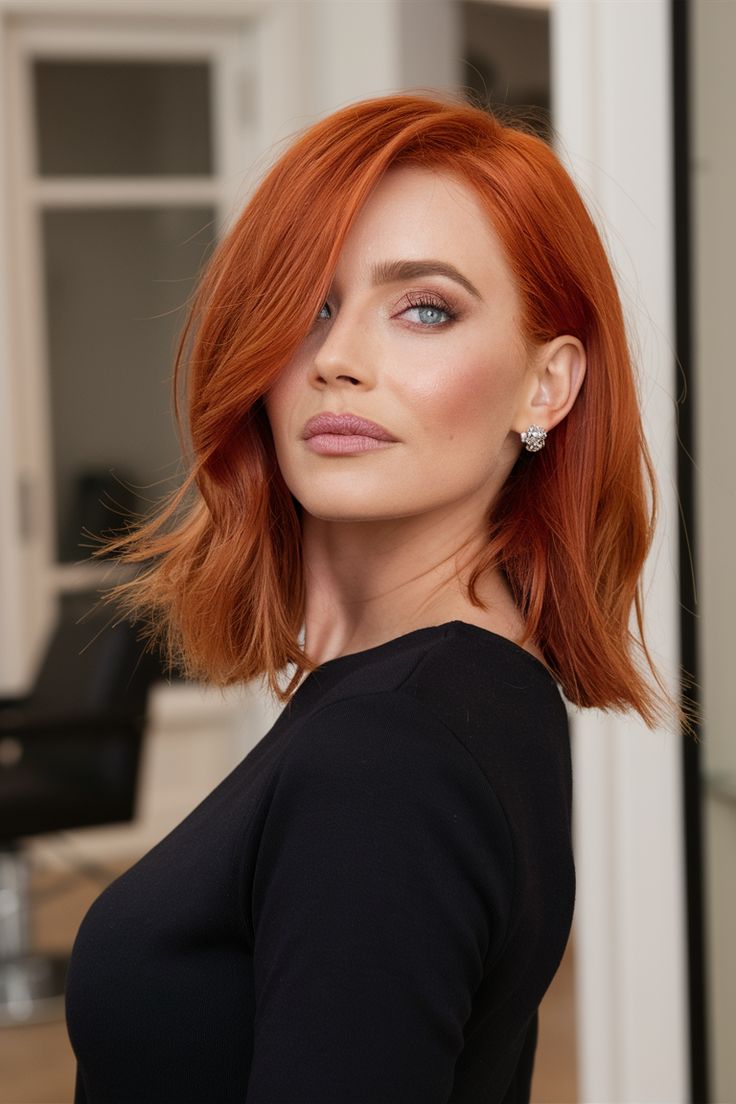 This bob sits at the perfect midpoint between playful and powerful. The bright flame color injects confidence, while the loose waves give it an approachable charm. It’s a cut that says “I’m here for the meeting — and for the after-party.”