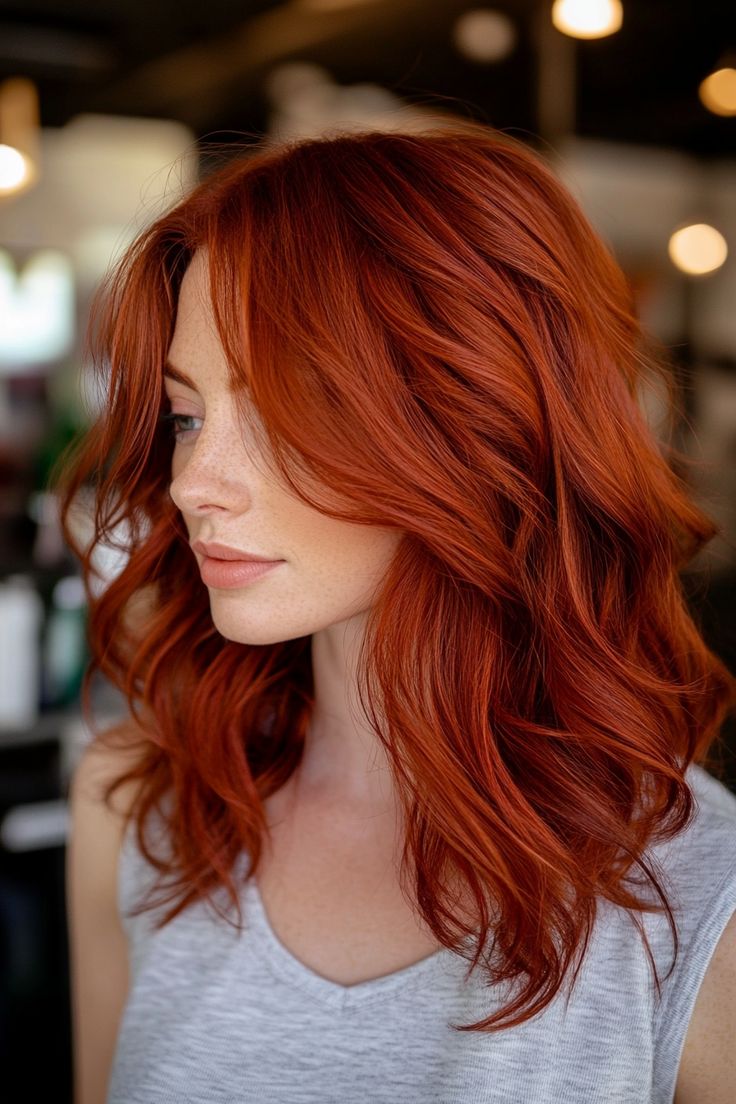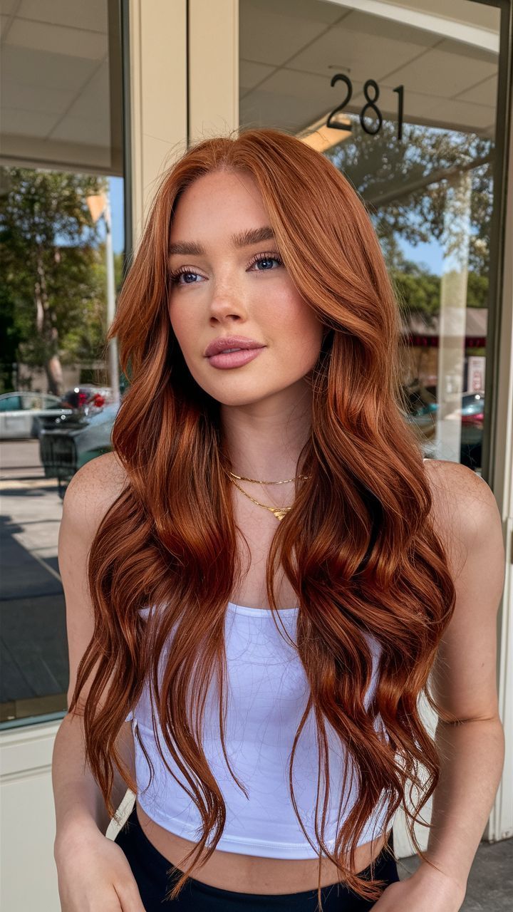 I’d add soft face-framing layers for extra movement but avoid dark roots here — they’d break the golden illusion.Red in 2025 isn’t just a color choice — it’s a personality statement. Whether you’re drawn to vivid drama or the whisper of natural copper, there’s a shade here that can match your energy and season. Which one would you dare to try? Tell me in the comments — I’d love to hear which shade is calling your name.