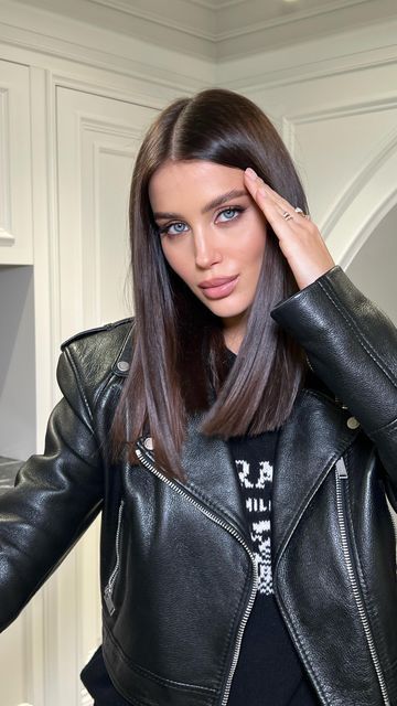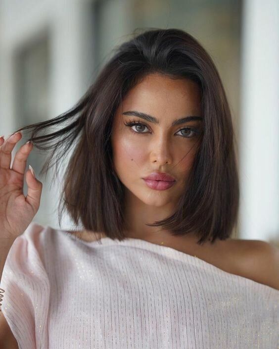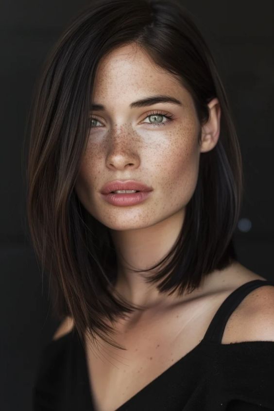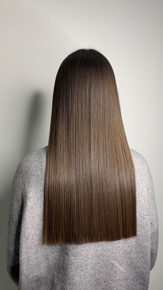 This straight, sleek brown hair epitomizes chocolates tones that are perfect for fall. The hairstyle is simple yet sophisticated, ideal for various face shapes, particularly oval and heart-shaped faces. The minimalistic look makes it practical for everyday wear, from the office to a casual day out.