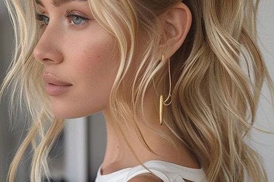 This hairstyle combines the elegance of a half-up twist with the carefree spirit of loose waves. It’s a versatile look that can easily transition from a day at the office to a night out.