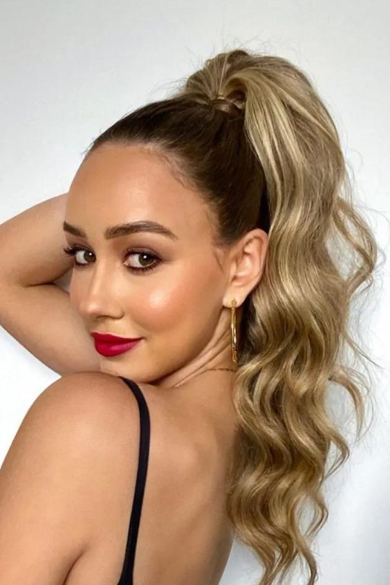 Embrace the elegance of a high ponytail combined with loose waves for a sophisticated yet effortless look. This hairstyle showcases the beauty of wavy hair while keeping it under control.