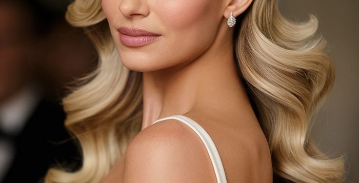 Channeling old Hollywood glamour, this hairstyle features voluminous, cascading curls. Ideal for brides aiming for a classic and timeless look, it pairs beautifully with vintage-inspired gowns.