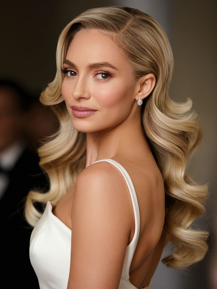 Channel the glamour of old Hollywood with these classic waves. Perfect for a bride who loves vintage style, this look exudes sophistication and timeless beauty.