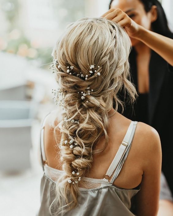 - Floral accents: Small, delicate flowers woven into the hair add a romantic and ethereal quality.