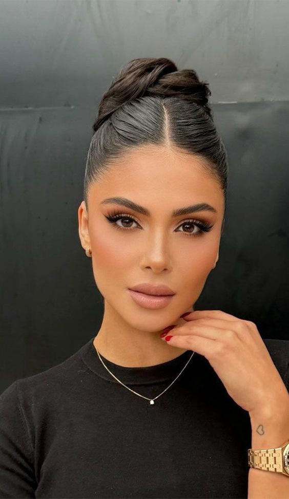 This high, sleek top knot is a modern take on the classic updo. It’s perfect for the contemporary bride who wants a clean, sophisticated look that keeps the focus on the dress and accessories.