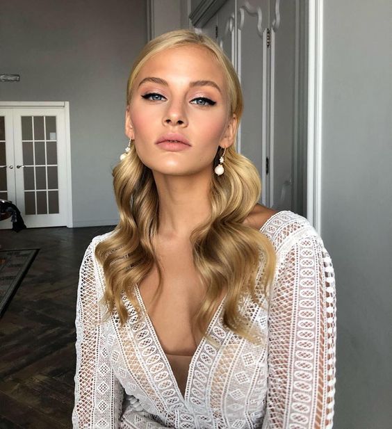 This look is perfect for brides seeking a timeless, elegant style with a touch of vintage charm. The vintage curls bring a sense of nostalgia and sophistication.