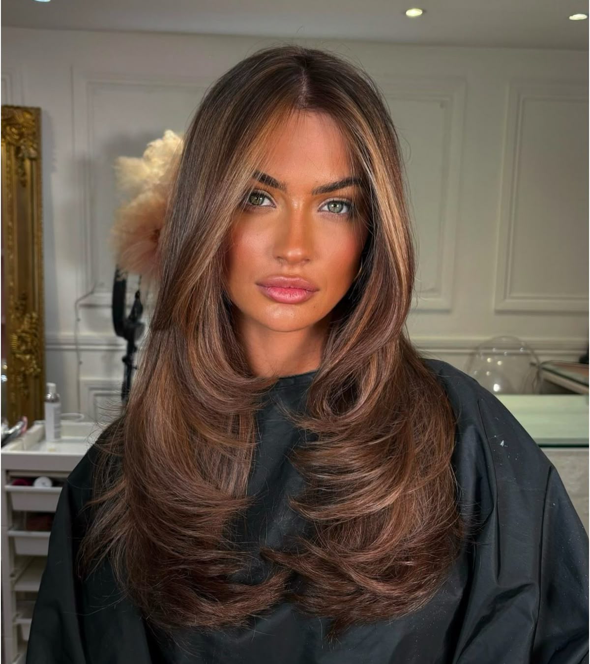Think understated glamour: rich brunette tones with natural, voluminous flow. This cut sings for women with wavy hair or even subtle curly textures. Best for those with thick hair, as the volume carries the drama. It flatters oval faces the most, but for round faces, keeping extra lift at the crown helps elongate features.