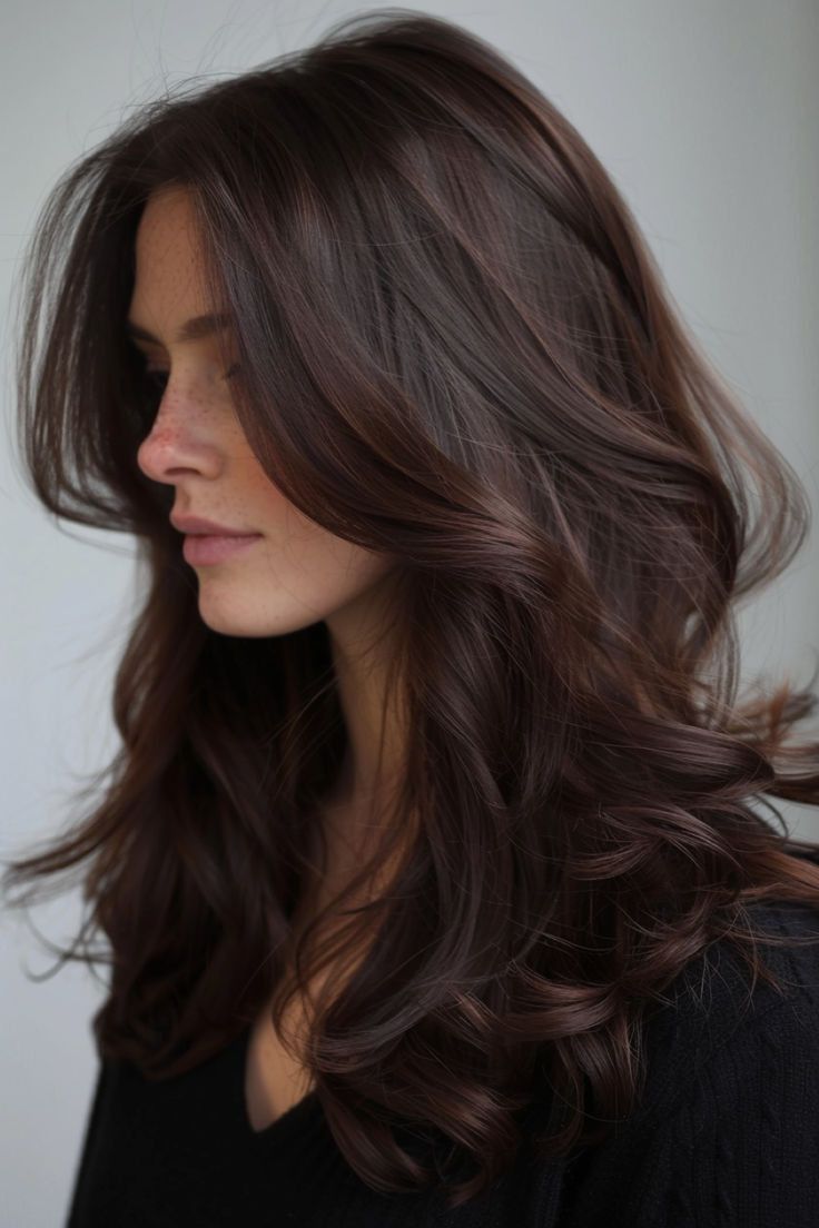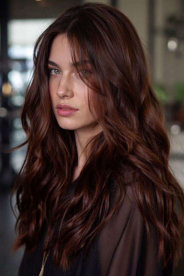 This style celebrates the richness of chocolate brunette with a subtle red undertone, almost like mulled wine in fall light. The voluminous waves keep it from feeling heavy, while the color offers something unique without straying too far from natural. It works beautifully for medium to long lengths, giving hair the body to frame the face. A stunning option for evening outings, especially in colder months.