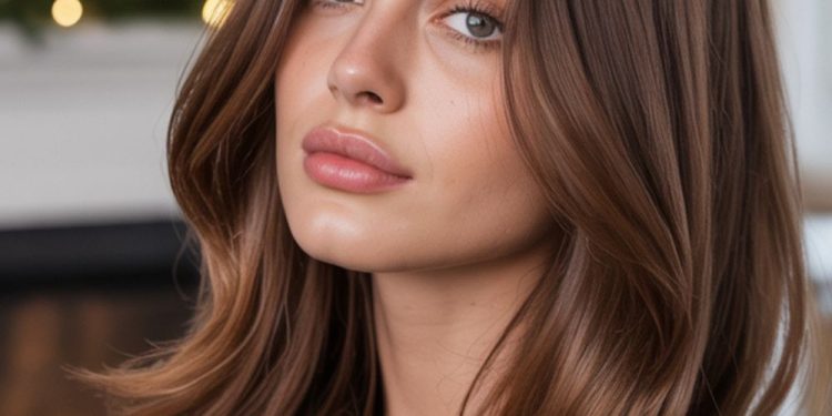 The first style is all about timeless sophistication—long, flowing dark brunette hair with natural depth. This look flatters oval and heart-shaped faces especially well, and its versatility makes it wearable for both formal events and casual winter outings. For pale skin, this shade adds warmth, creating balance and glow in colder months.