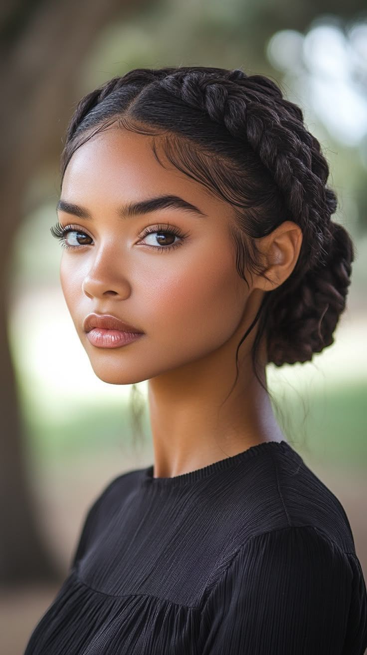 A low braided bun with a crown braid circling the head is the definition of regal simplicity. This natural braids style radiates 90sStyles elegance while staying practical—hair is secured, neat, and weatherproof. It’s universally flattering, particularly for round and oval faces, since the height elongates the silhouette. Suitable for weddings, gallery events, or Sunday brunch, but perhaps too formal for a quick grocery run.