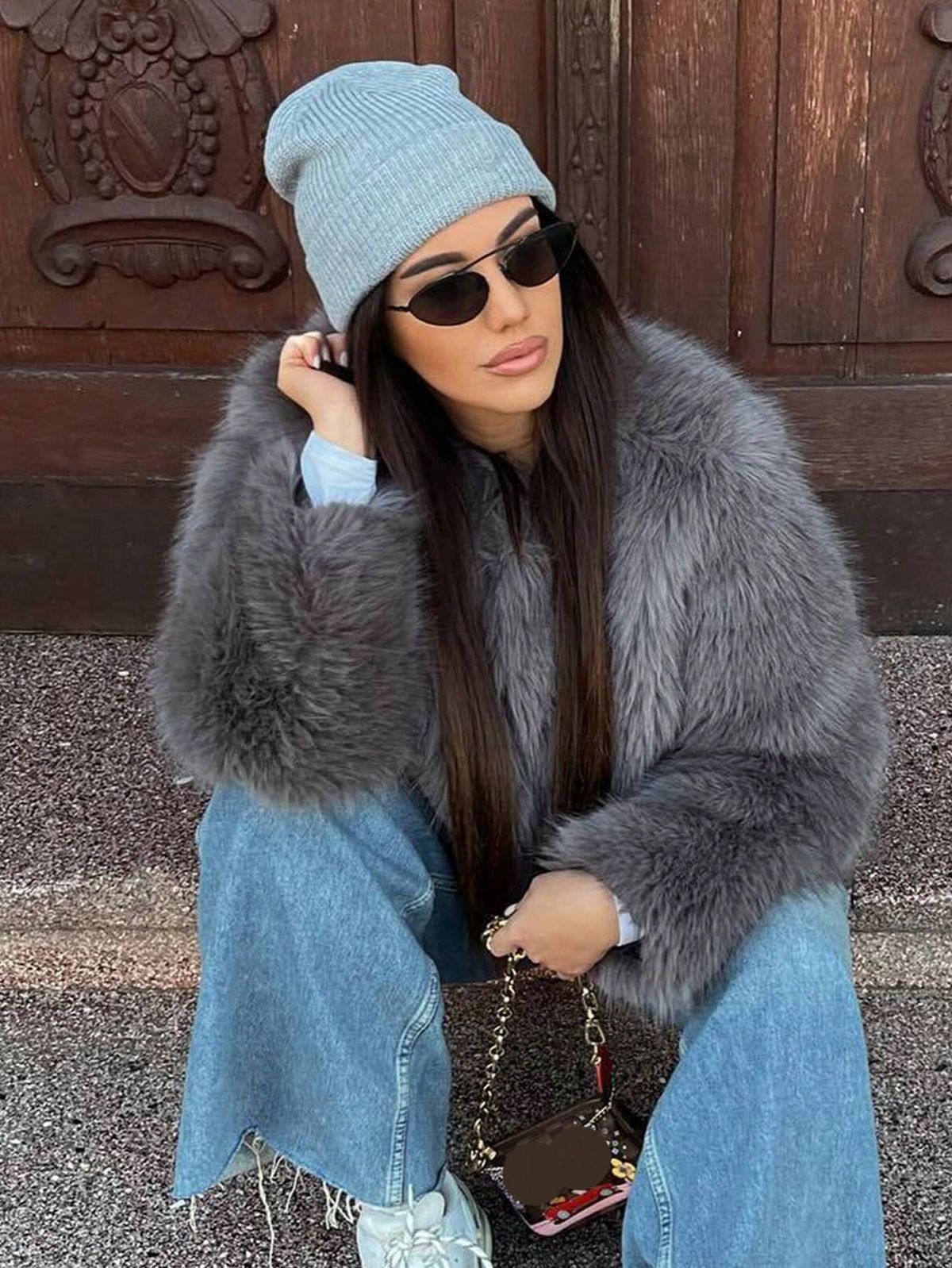Jacket: Plush yet cropped, echoing cowgirl or Western vibes through silhouette.