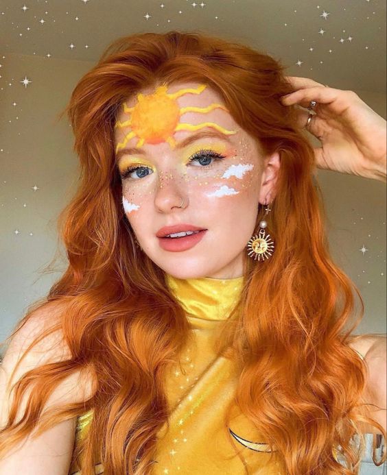 Shine bright with this sun goddess makeup. The vibrant yellow and orange hues make it a pretty and simple choice for those who want to glow.