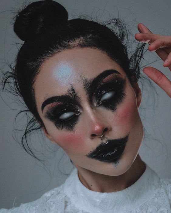 Channel your inner terror with this chilling puppet makeup. This look is simple yet highly effective in creating a spine-chilling effect.