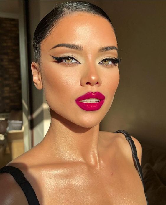 To enhance this look, consider adding a subtle highlighter on the cheekbones and a touch of bronzer for warmth. Avoid overly dramatic blush, as it might clash with the bold eyeshadow and lips.