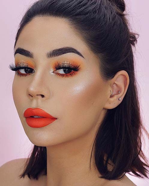 Orange eyeshadow is bold and vibrant, perfect for making a statement. This look is ideal for summer events and parties.