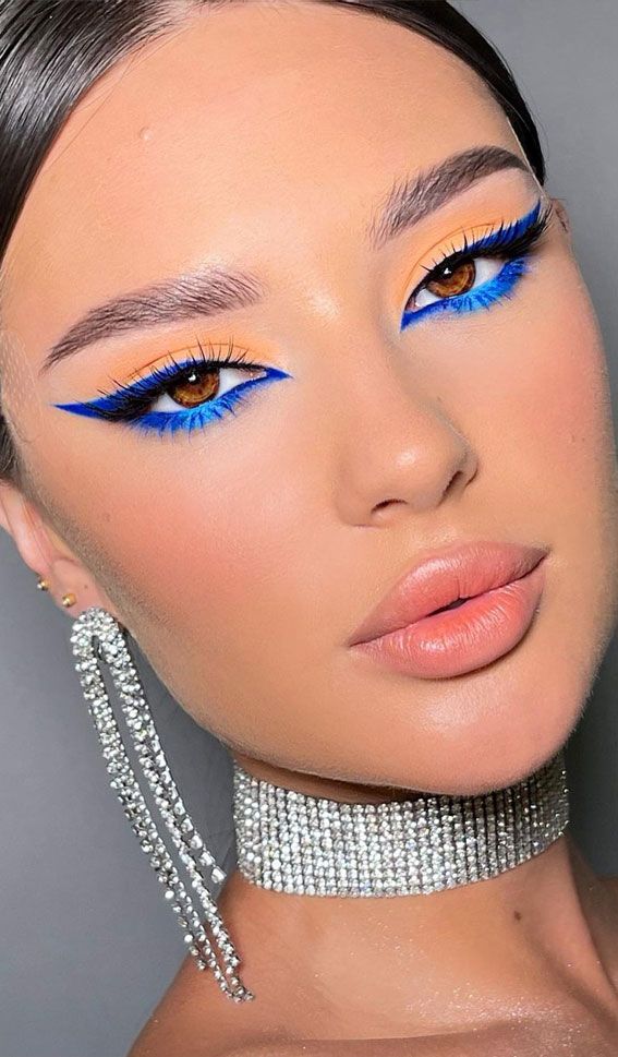 Electric blue eyeshadow adds a pop of color that is both daring and fashionable. This look is perfect for nights out and parties where you want to make a statement.